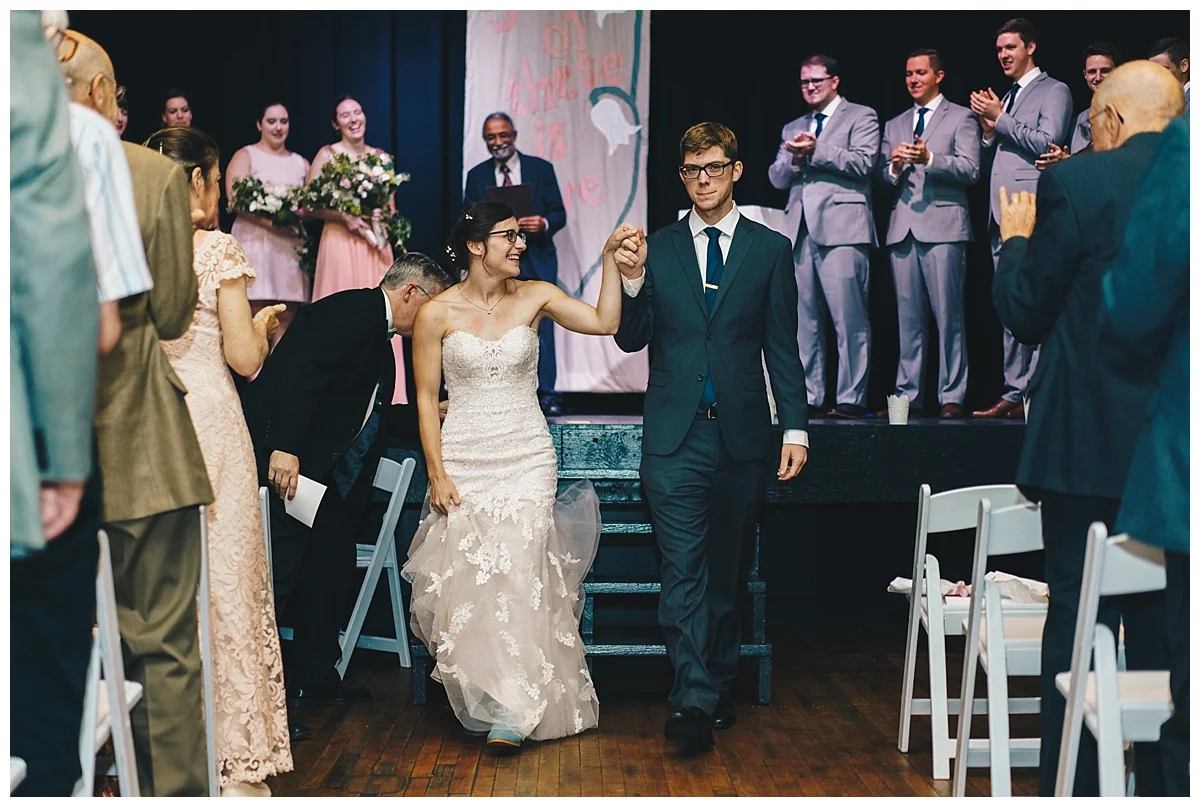 Josiah and Kira’s wedding venue was a gorgeous old theater in the Over-The-Rhine district called Woodward Theater. It was the perfect blend of old and new to showcase Cincinnati. With a live band and local food paired with the old architecture of the venue, it was the perfect way to celebrate these two! Oh, I should also mention that the backdrop you see during the ceremony and the flowers are all made by Kira and her family! How awesome is that!? Check out some of my favorite moments from their special day!