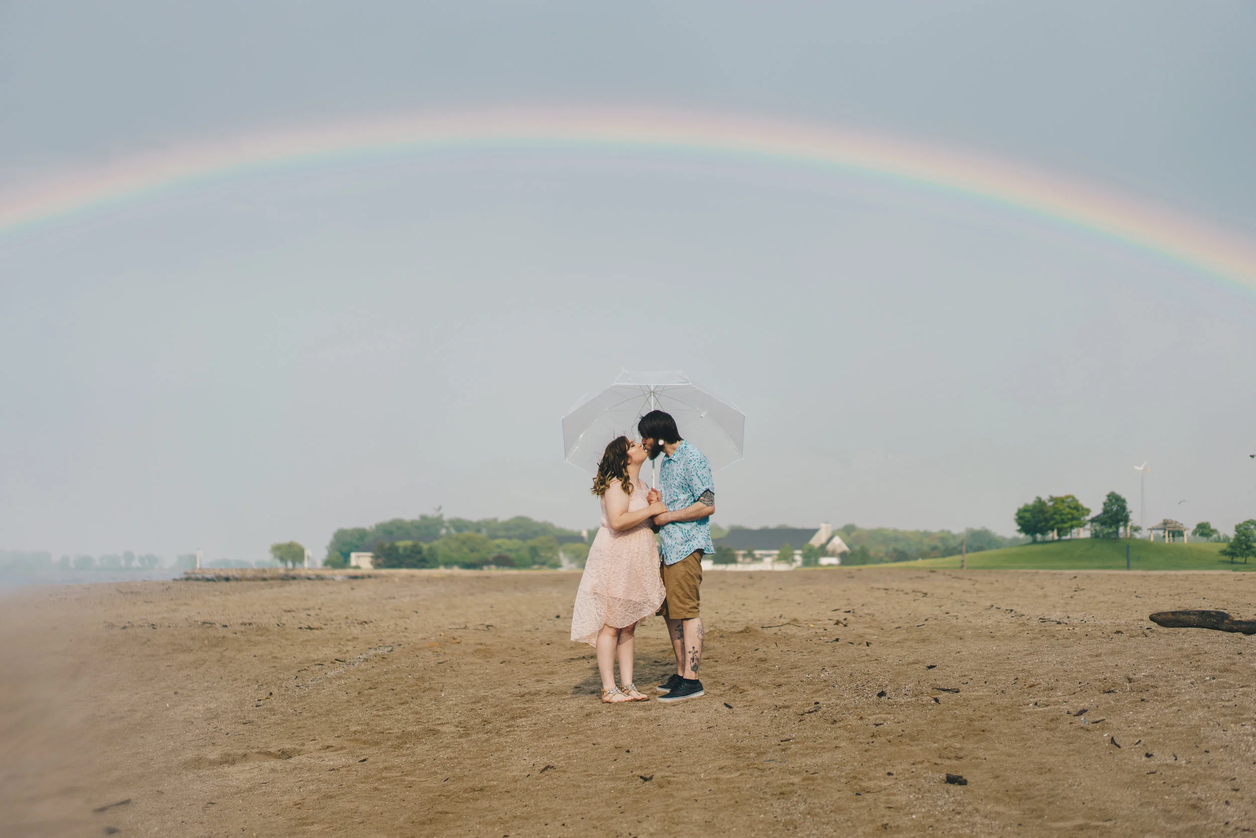 A week earlier, the weather did not cooperate for Collin and Araya's engagement session. Looking at the weather for their rescheduled session, it was looking like it may be the same for that day too. We decided to give it a shot and see what would happen. When we all arrived, it was storming, but we decided to wait a few minutes and see what happened. When the rain passed, we ended up with this beautiful rainbow! To say it was amazing is an understatement!