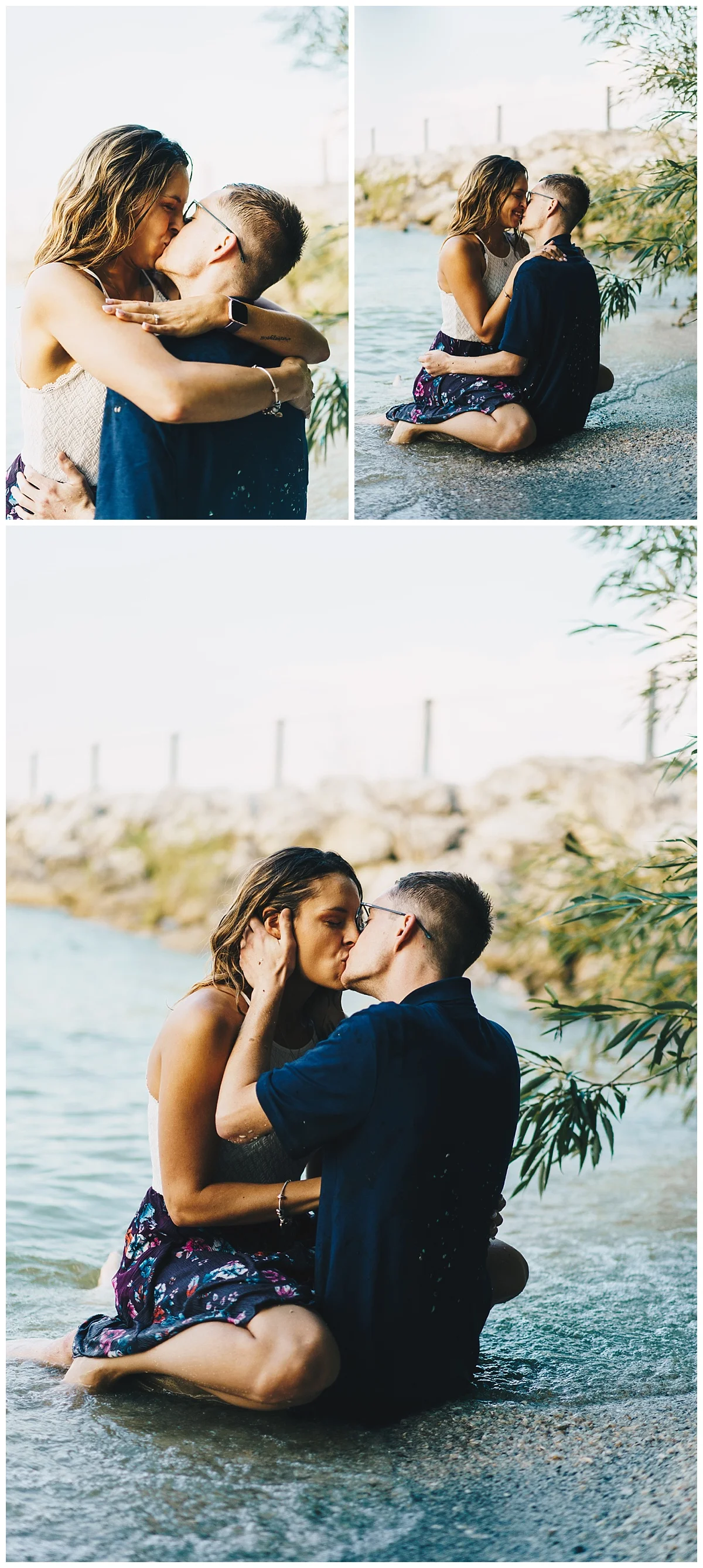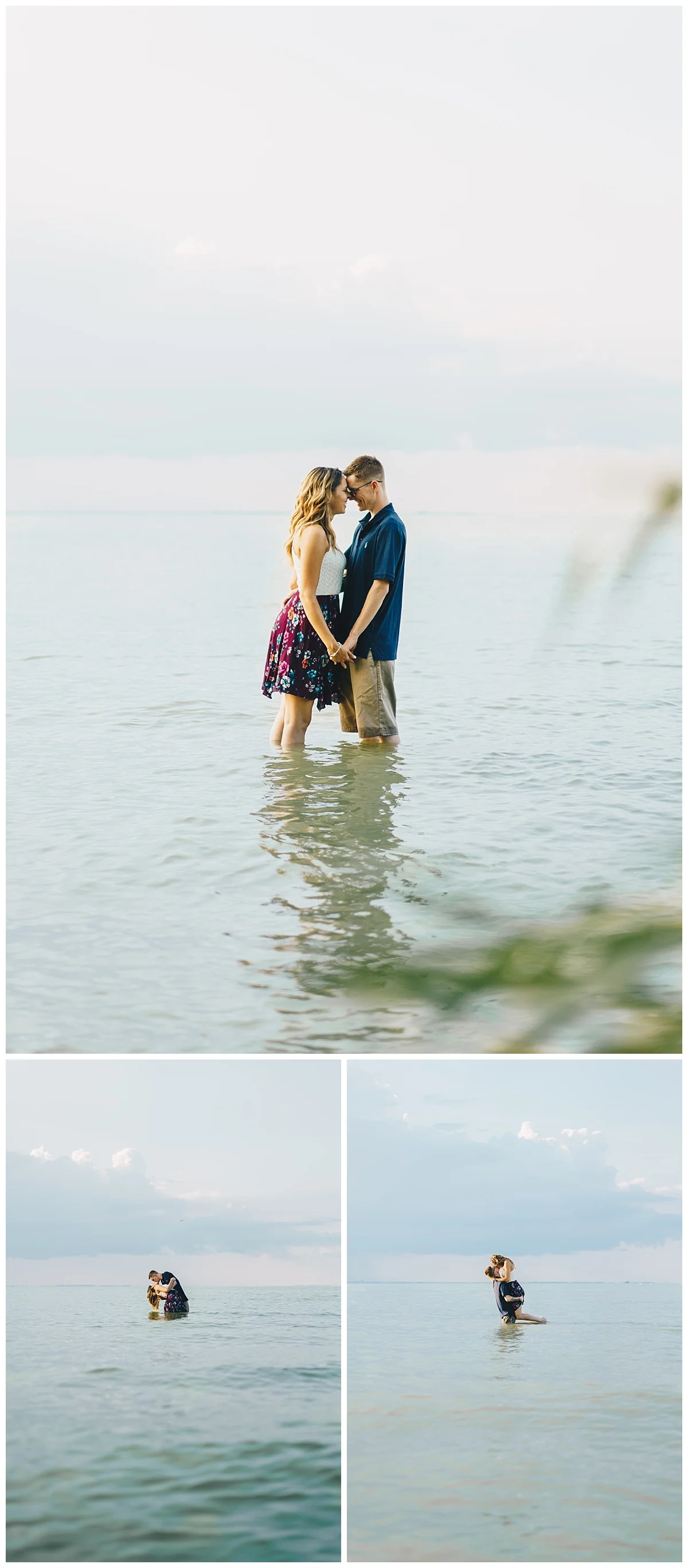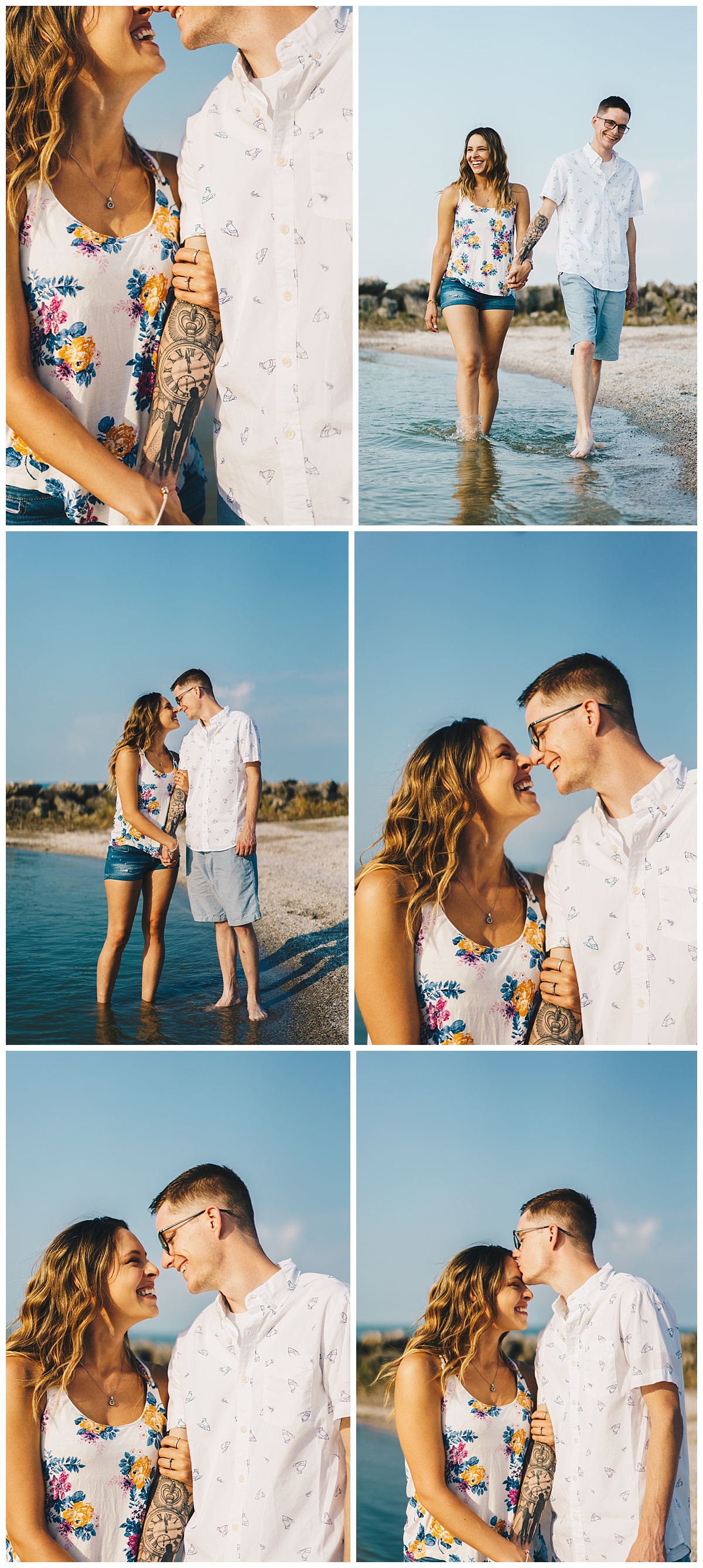 We could not have asked for a better day for Nick and Lexie’s engagement session! We had beautiful blue skies, warm water, and a storm off in the distance over the water. I mean, what more could we ask for? The beach at Maumee Bay wasn’t too busy, and we were able to sneak off to some quieter areas of the park for some more intimate moments. When Lexie and I were talking about their engagement session, the idea of doing some photos in the water came up pretty quickly, and I couldn’t have been more excited! When we got Nick to agree, we knew it was going to be a great session!